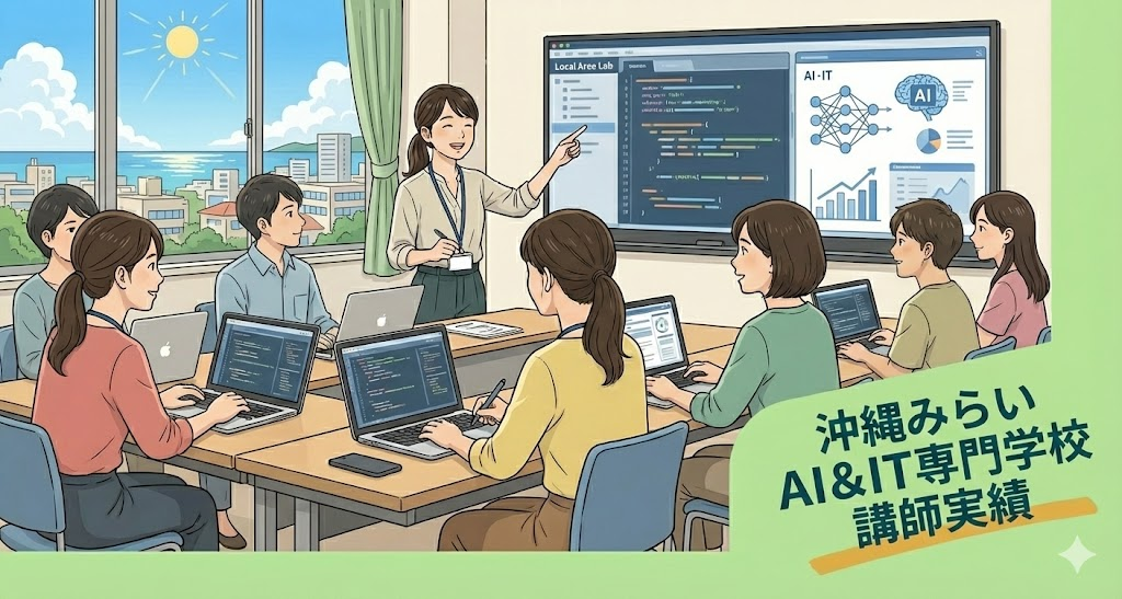 現在、「沖縄みらいAI&IT専門学校」にて講師を務め、学生たちへ専門的な知識と技術の指導を行っています。